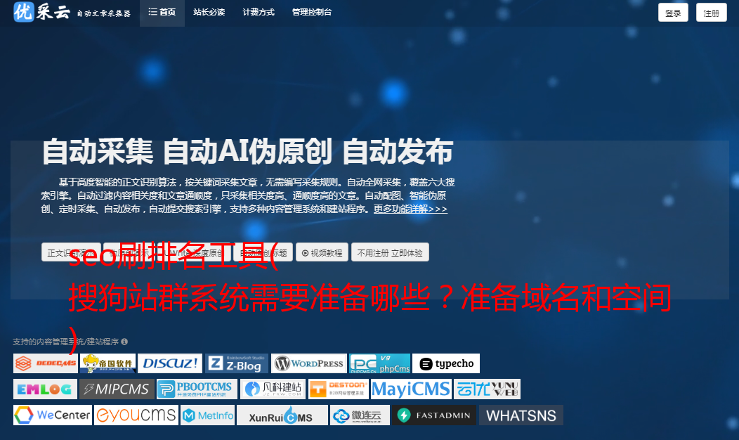 seo刷排名工具( 搜狗站群系统需要准备哪些?准备域名和空间 )