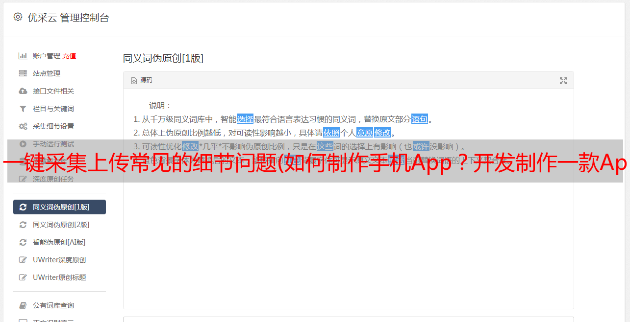 优采云 发布时间: 2021-12-31 23:05一键采集上传常见的细节问题(如何制作手机App?开发制作一款App需要多少钱?