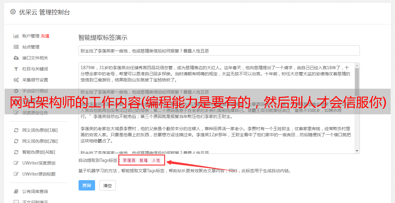 优采云 发布时间: 2022-01-01 00:04网站架构师的工作内容(编程能力是要有的,然后别人才会信服你)