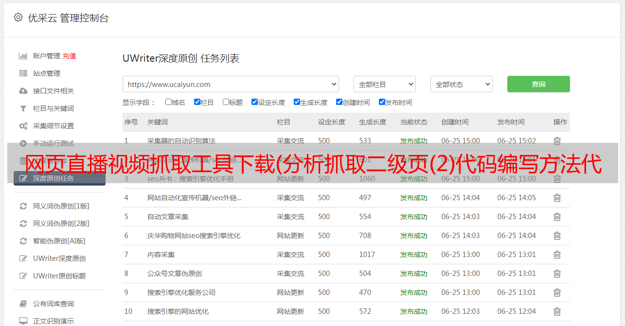 优采云 发布时间: 2022-01-01 06:04网页直播视频抓取工具下载(分析抓取二级页(2)代码编写方法代码技术解析)