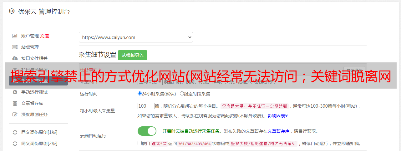 优采云 发布时间: 2022-01-01 08:09搜索引擎禁止的方式优化网站(网站经常无法访问;关键词脱离网站内容;内容分散主题性差)