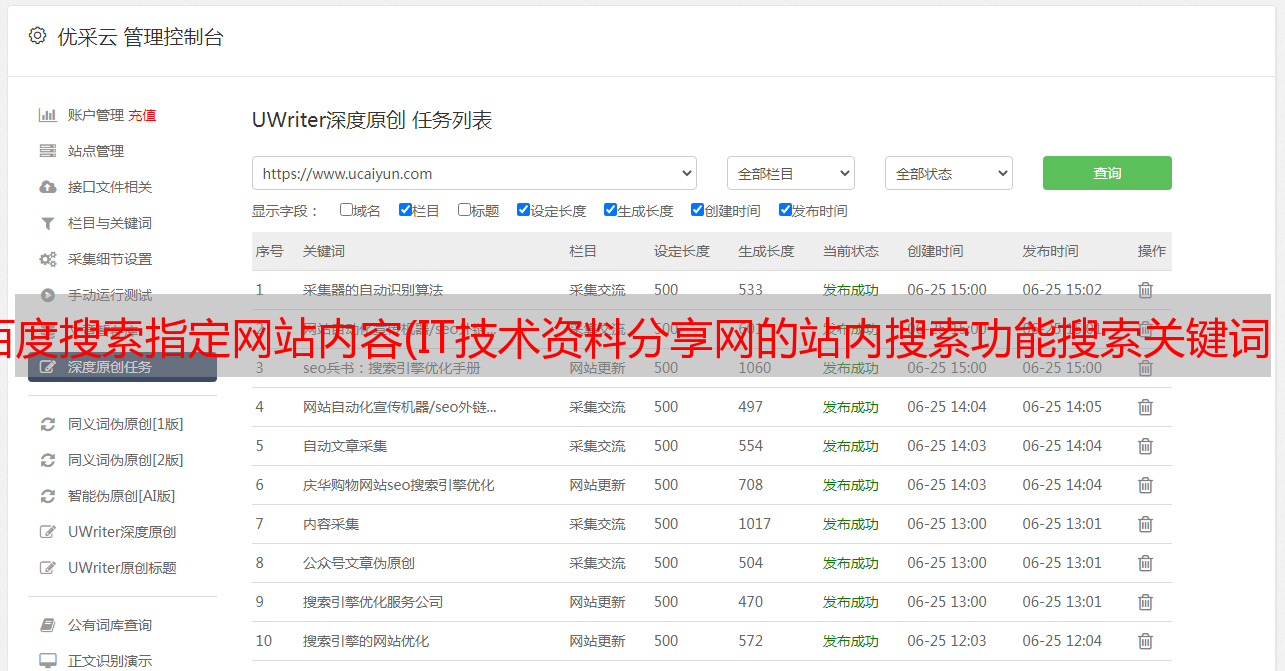 优采云 发布时间: 2022-01-01 16:09百度搜索指定网站内容(IT技术资料分享网的站内搜索功能搜索关键词“win10设置技巧”