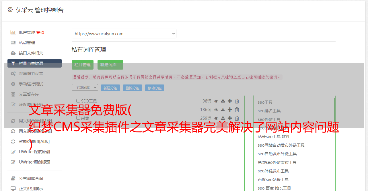 我们要知道网站基本上都有采集的需求。作为SEO优化师,我们没有那么强大的技术支持,只能借助一些工具来实现采集。填写内容,实现网站SEO优化,提升网站的收录、关键词新增和关键词排名,最终实现流量积累,实现流量转换。