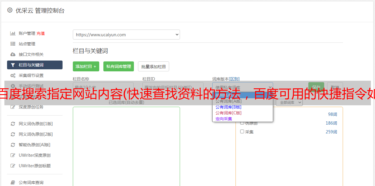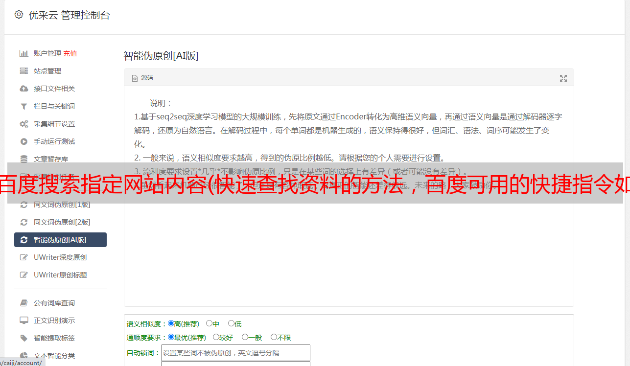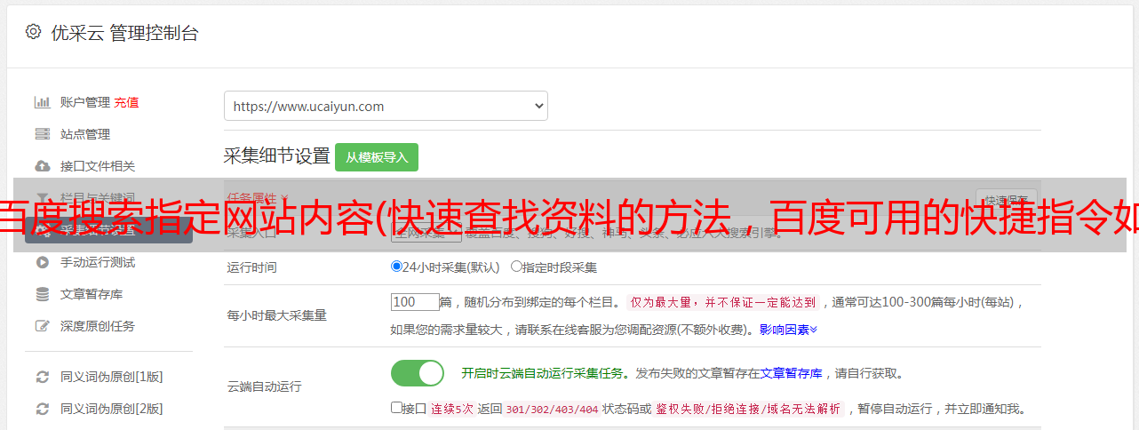 优采云 发布时间: 2022-01-02 01:23百度搜索指定网站内容(快速查找资料的方法,百度可用的快捷指令如下: