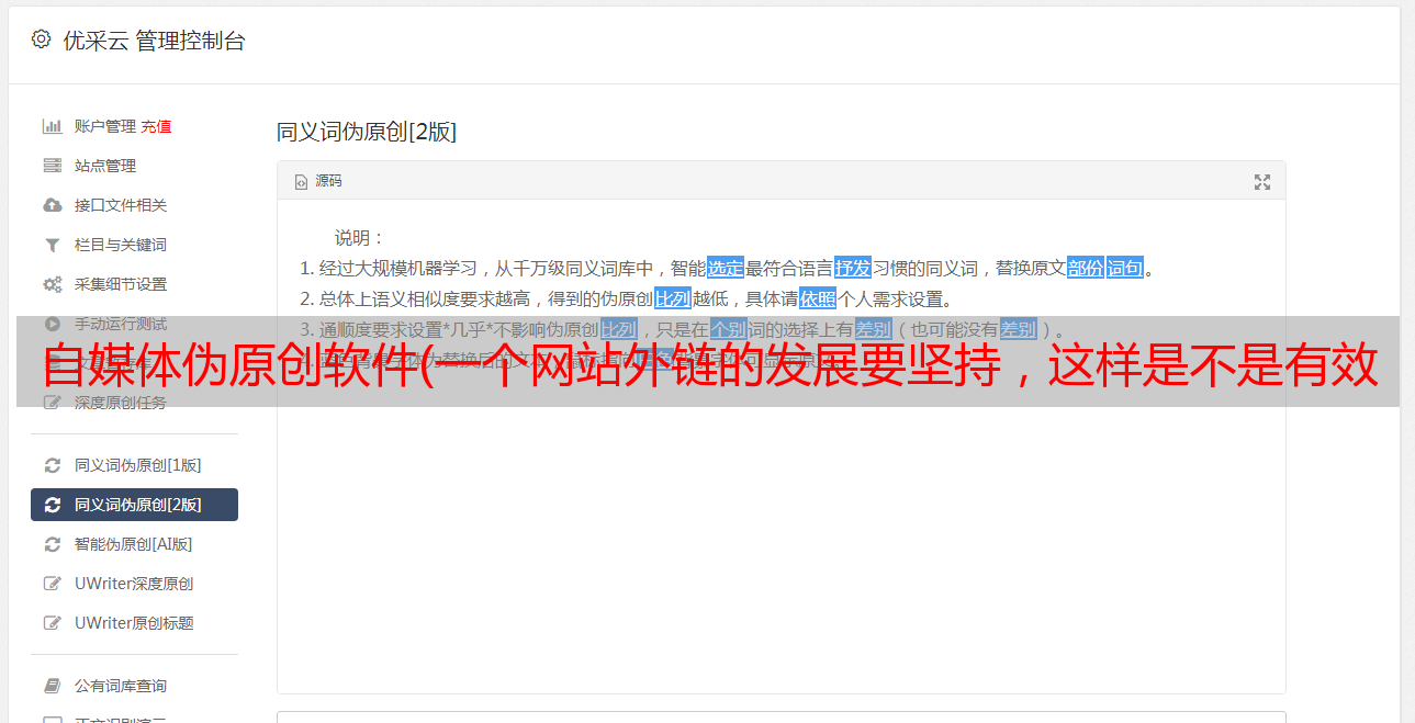 优采云 发布时间: 2022-01-02 13:18自媒体伪原创软件(一个网站外链的发展要坚持,这样是不是有效果吗)