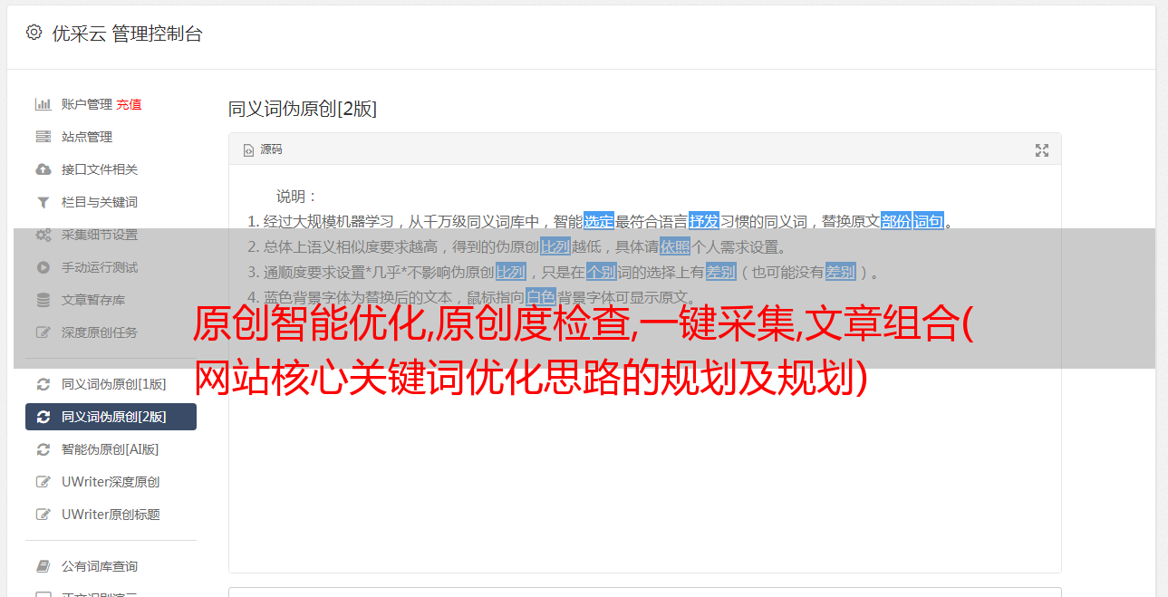 原创智能优化,原创度检查,一键采集,文章组合( 网站核心关键词优化思路的规划及规划)