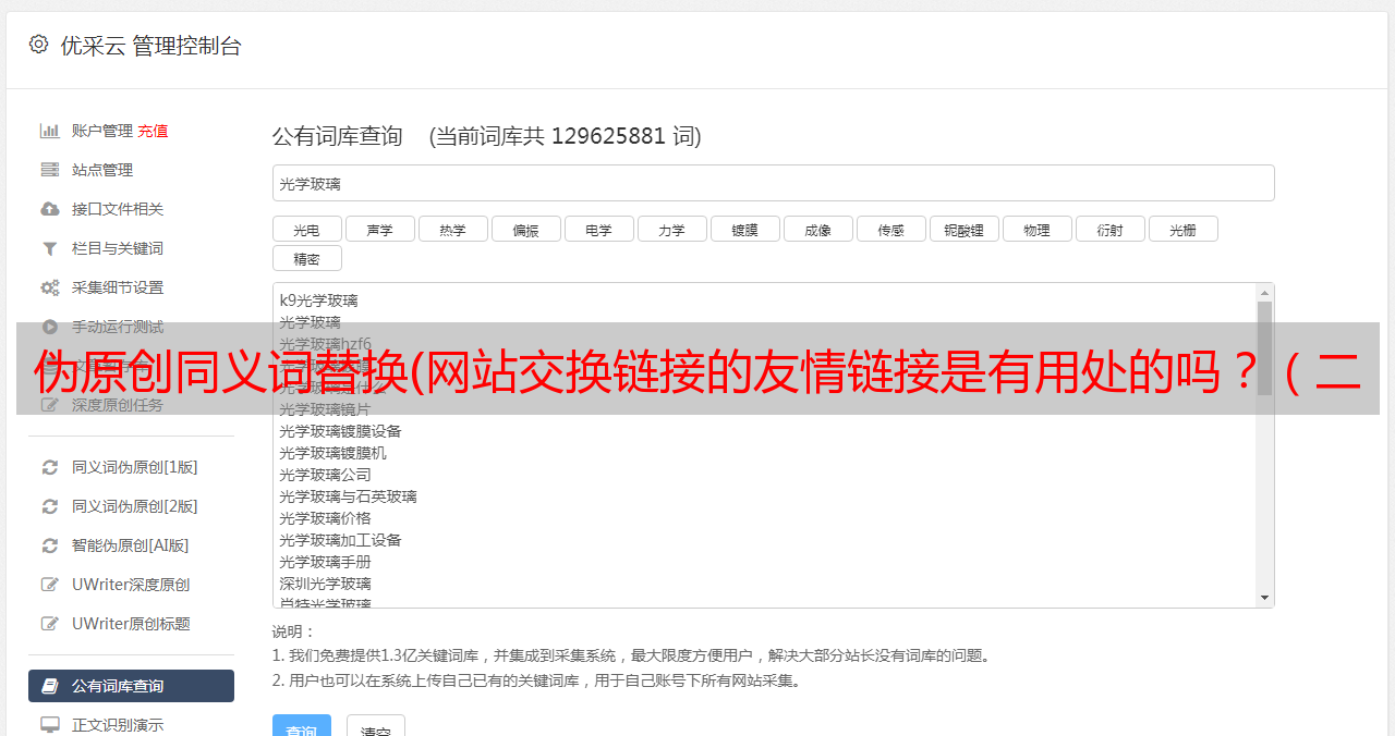 优采云 发布时间: 2022-01-02 19:02伪原创同义词替换(网站交换链接的友情链接是有用处的吗?(二))
