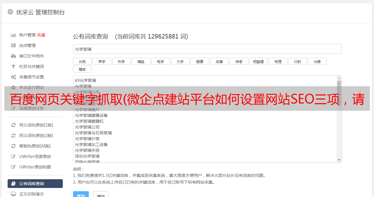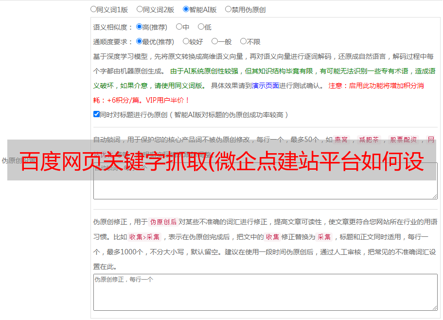 百度网页关键字抓取(微企点建站平台如何设置网站SEO三项,请参考使用说明)