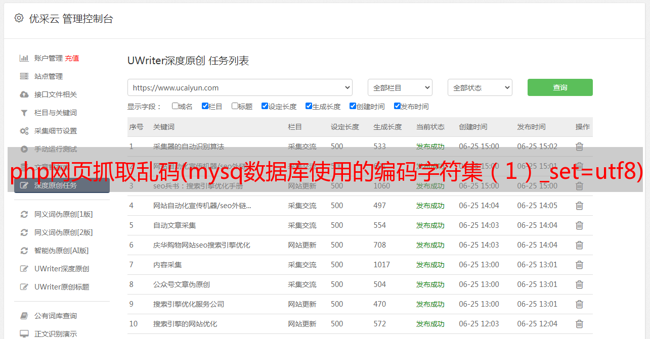 优采云 发布时间: 2022-01-04 20:12php网页抓取乱码(mysq数据库使用的编码字符集(1)_set=utf8)