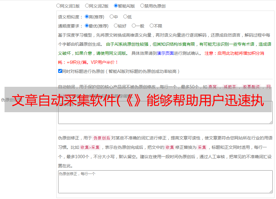 没错,这个强大的工具不仅仅是采集玩法,用户还可以根据自己的需要对文章进行伪原创处理,使用起来非常方便实用。