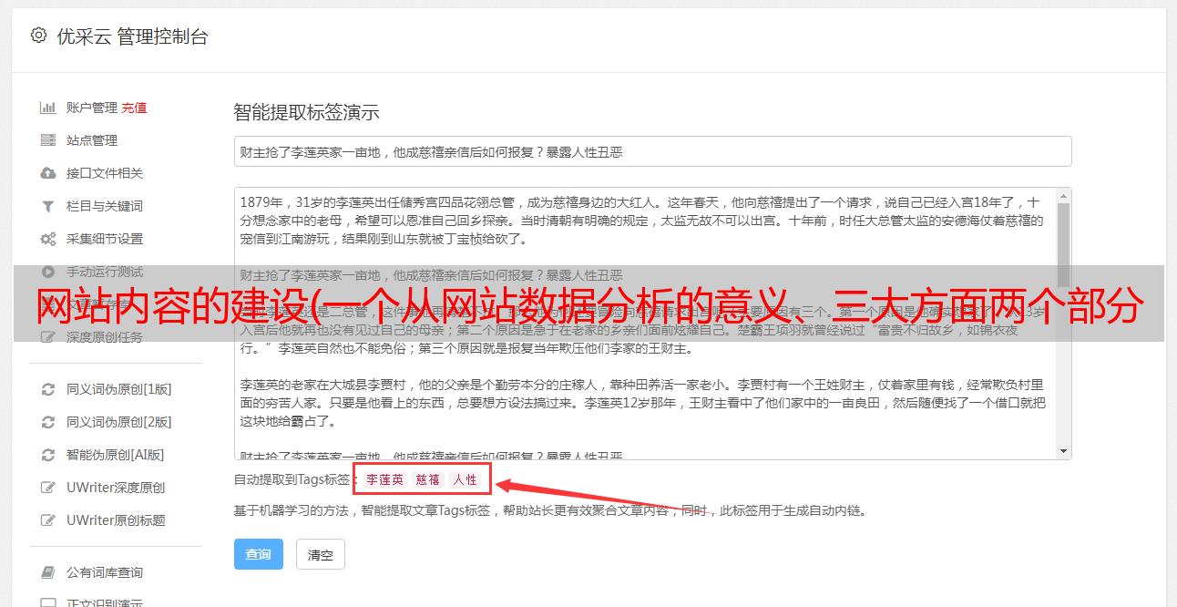优采云 发布时间: 2022-01-05 00:02网站内容的建设(一个从网站数据分析的意义、三大方面两个部分,详细地为)
