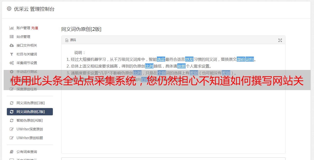 使用此头条全站点采集系统,您仍然担心不知道如何撰写网站关键字文章?
