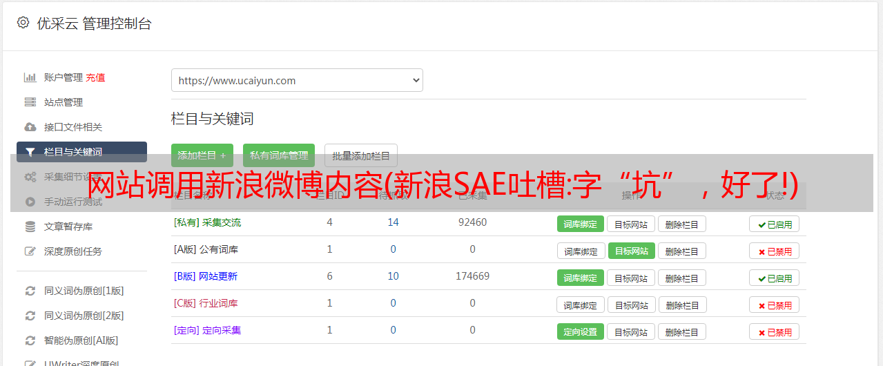 优采云 发布时间: 2022-01-05 02:12网站调用新浪微博内容(新浪SAE吐槽:字“坑”,好了!)