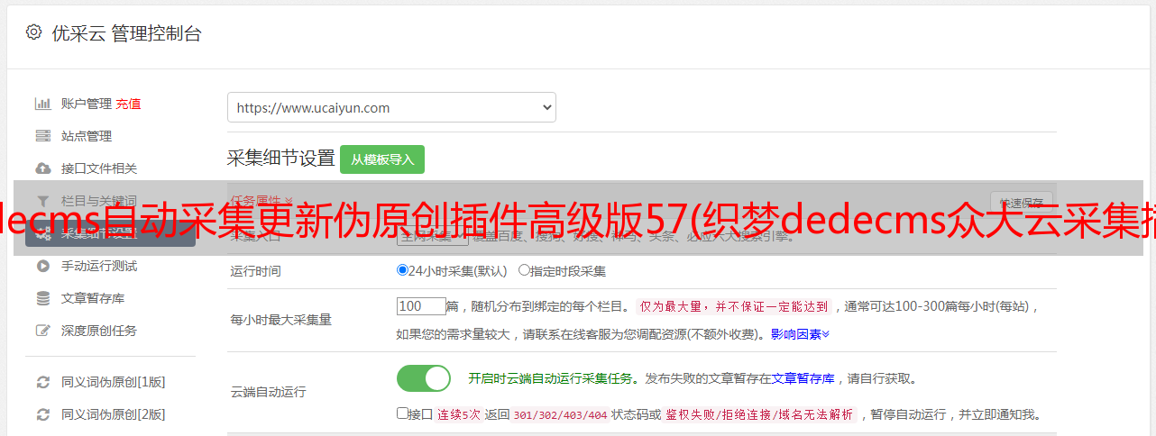 dedecms自动采集更新伪原创插件高级版57(织梦dedecms众大云采集插件.7.0.2. )