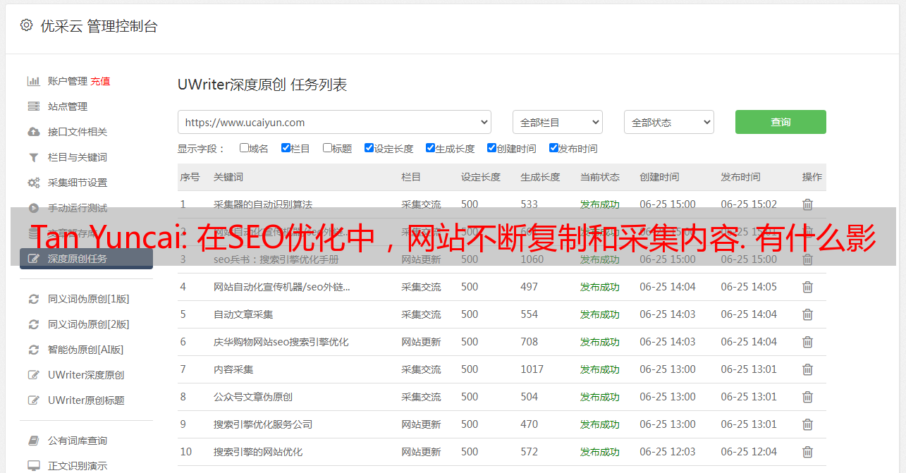 Tan Yuncai: 在SEO优化中,网站不断复制和采集内容. 有什么影响?