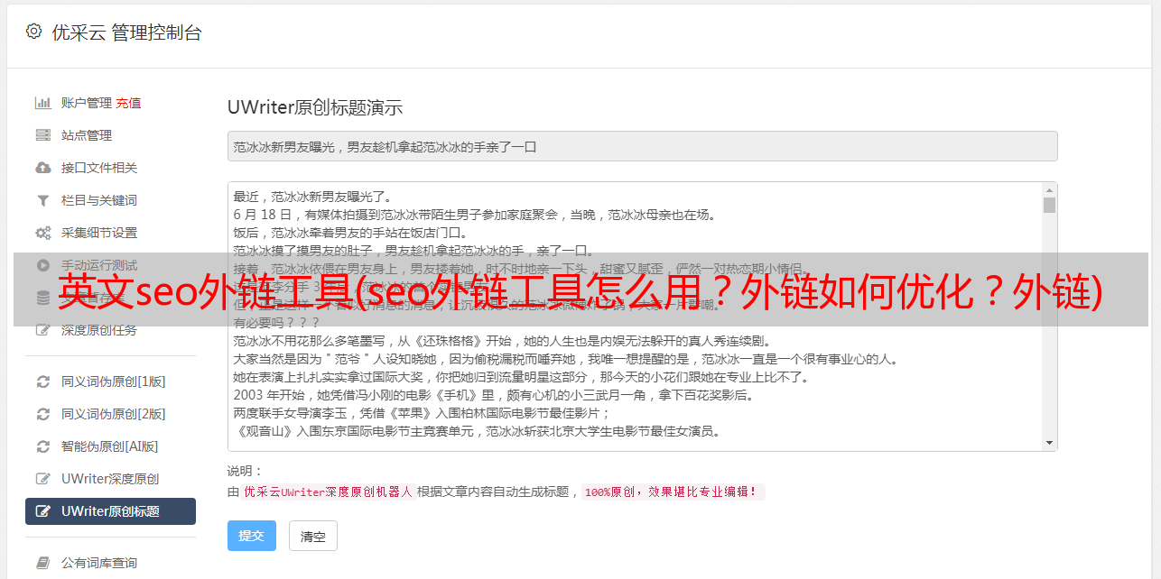 优采云 发布时间: 2022-01-05 09:02英文seo外链工具(seo外链工具怎么用?外链如何优化?外链)