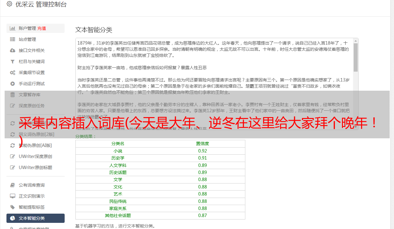 采集内容插入词库(今天是大年、逆冬在这里给大家拜个晚年! )