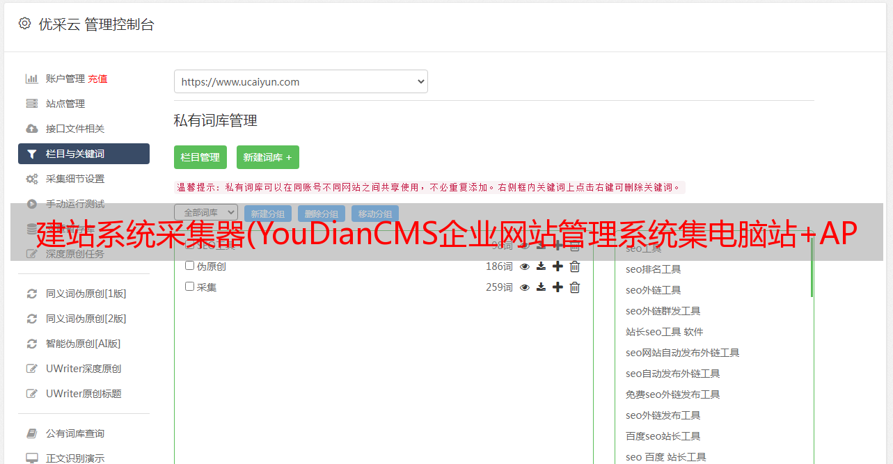 优采云 发布时间: 2022-01-05 12:18建站系统采集器(YouDianCMS企业网站管理系统集电脑站+APP+小程序五合一)