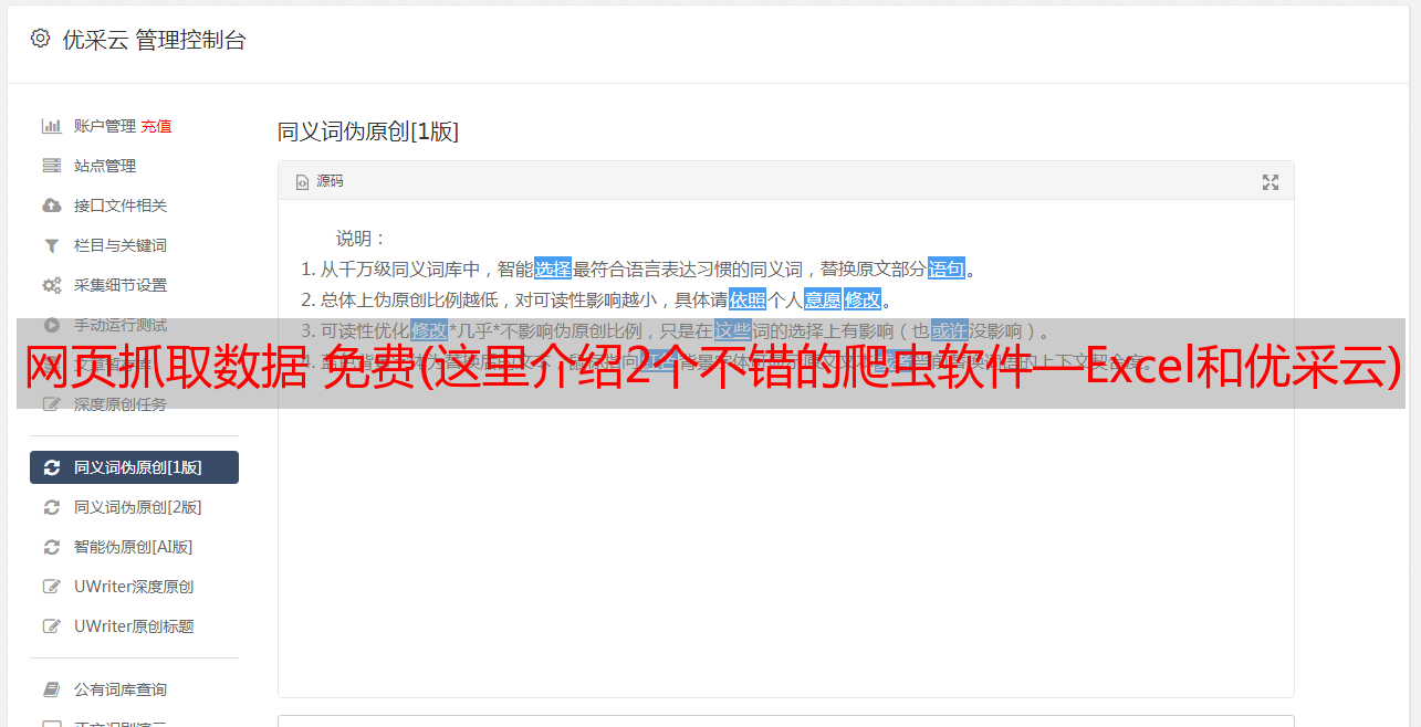 网页抓取数据 免费(这里介绍2个不错的爬虫软件—Excel和优采云)