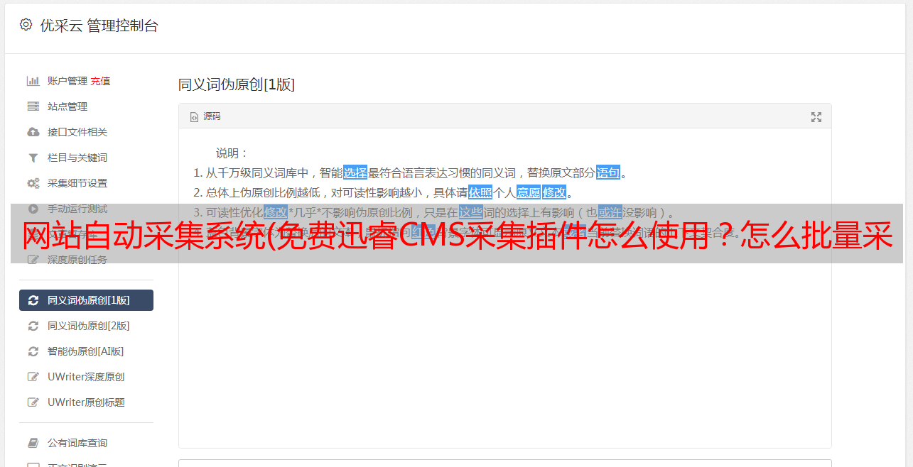 优采云 发布时间: 2022-01-05 15:16网站自动采集系统(免费迅睿CMS采集插件怎么使用?怎么批量采集文章到迅睿)