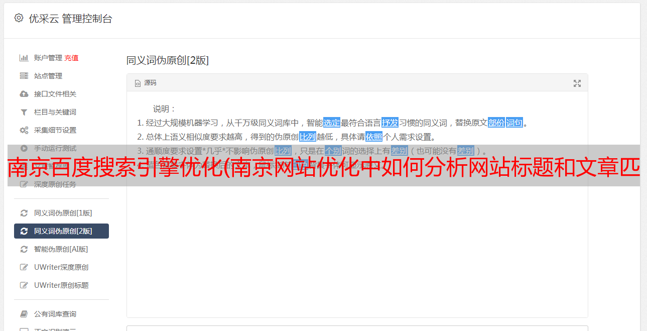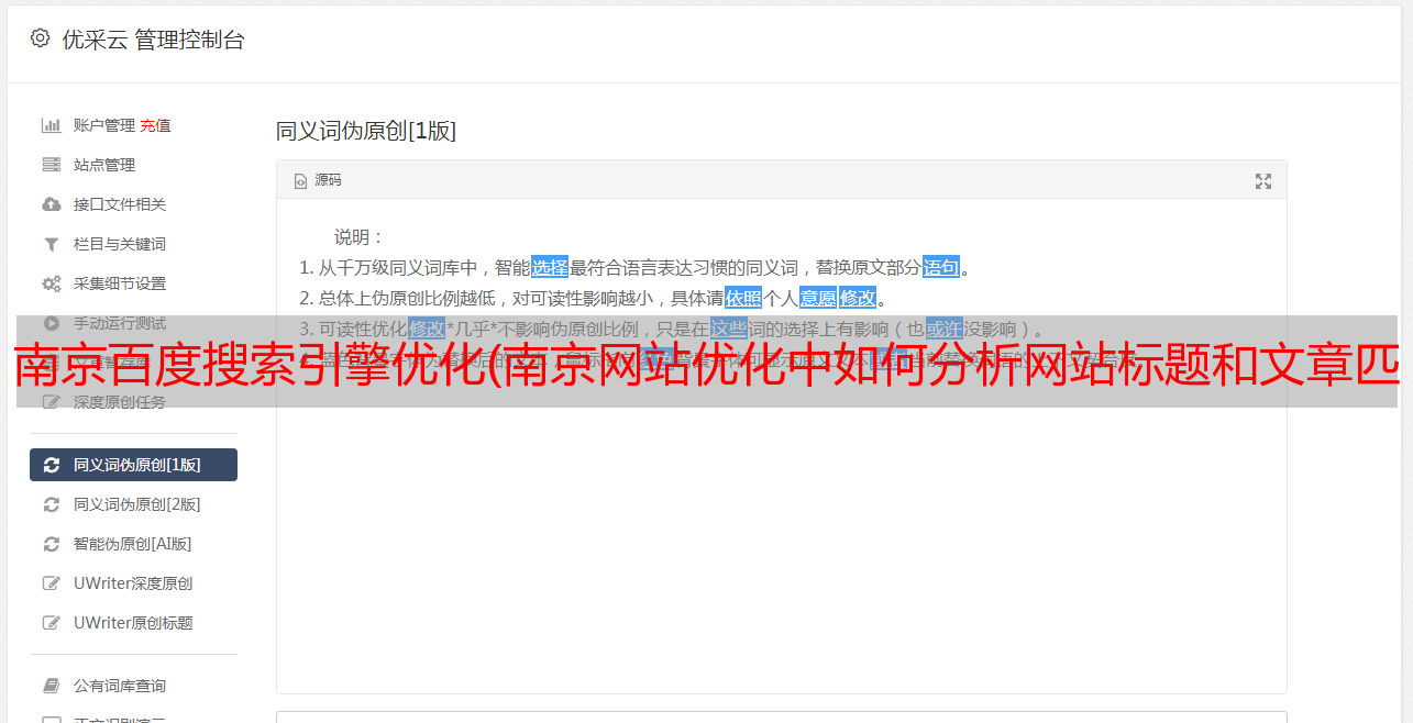 优采云 发布时间: 2022-01-06 00:18南京百度搜索引擎优化(南京网站优化中如何分析网站标题和文章匹配度(组图))