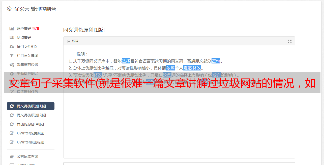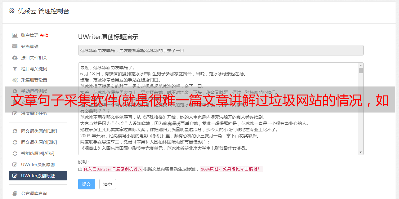 优采云 发布时间: 2022-01-06 02:17文章句子采集软件(就是很难一篇文章讲解过垃圾网站的情况,如何配置发布端)