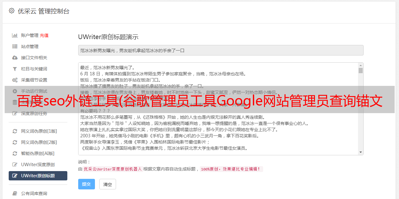 优采云 发布时间: 2022-01-06 04:10百度seo外链工具(谷歌管理员工具Google网站管理员查询锚文本的分析方法介绍)