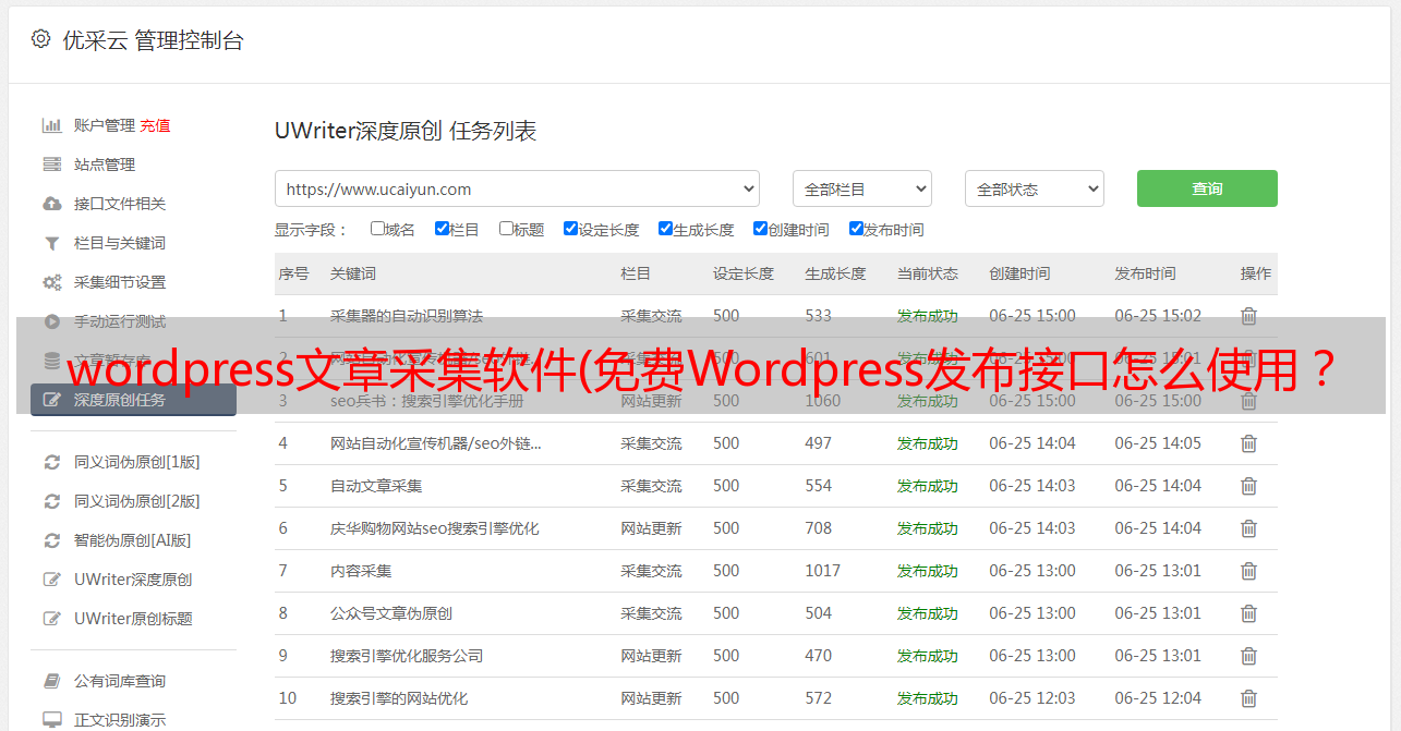 @网站模板原创度)-选择标题是否与插入的关键词一致(增加文章与话题行业的相关性)搜索引擎推送(自动推送到搜索引擎发布后文章增加网站收录)!同时也支持除wordpresscms之外的所有主流cms网站和站群采集伪原创发布推送。