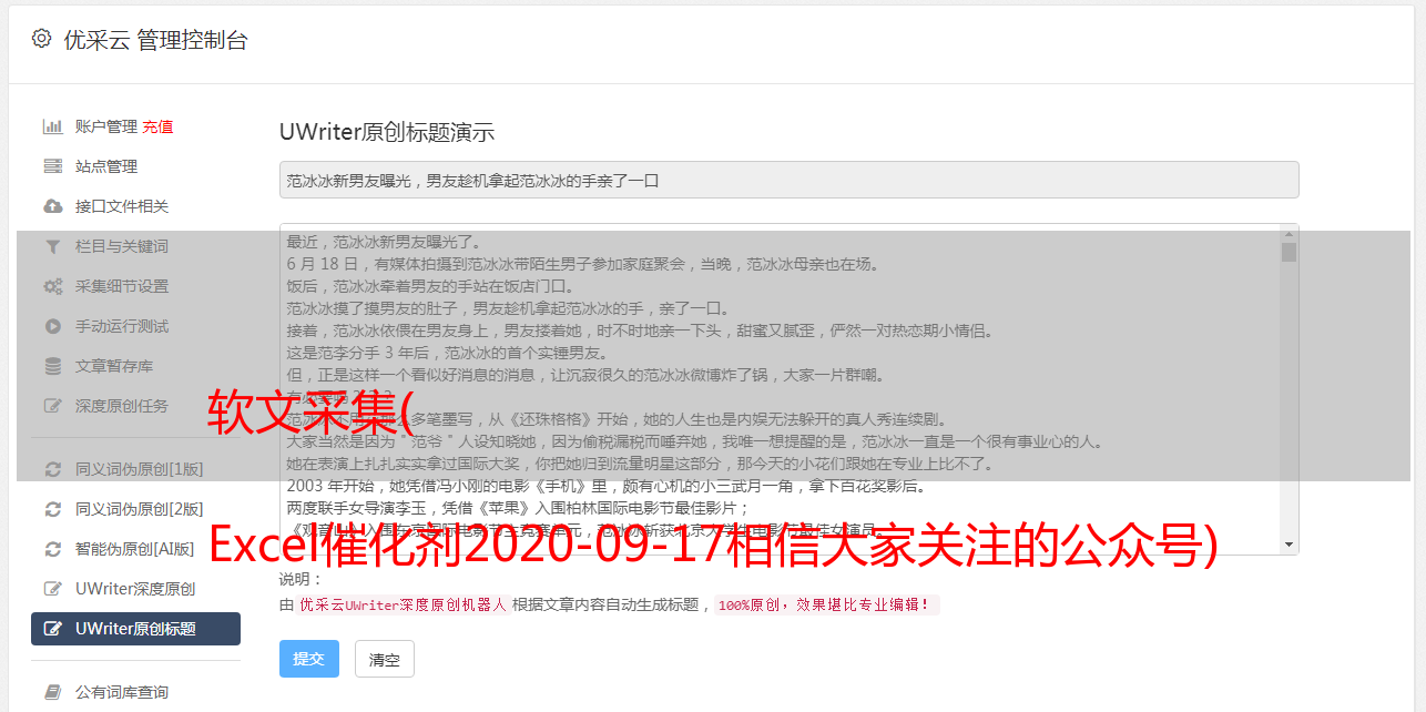 软文采集( Excel催化剂2020-09-17相信大家关注的公众号)