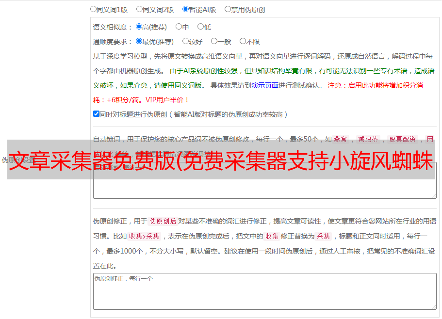 答:支持!可以在采集器local 伪原创之后直接发布。也可以使用小旋风蜘蛛池API伪原创!