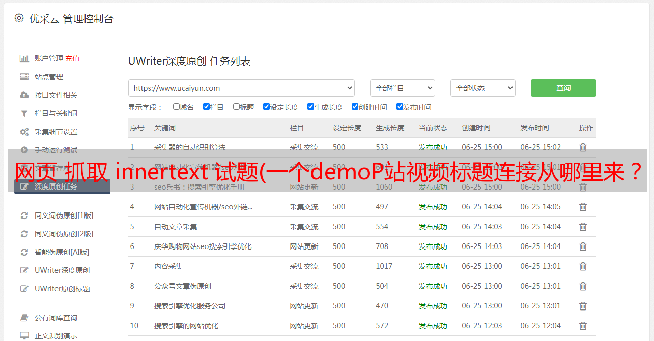 优采云 发布时间: 2022-01-06 15:06网页 抓取 innertext 试题(一个demoP站视频标题连接从哪里来?(图))