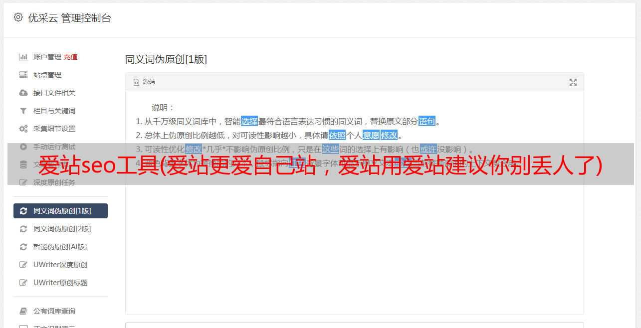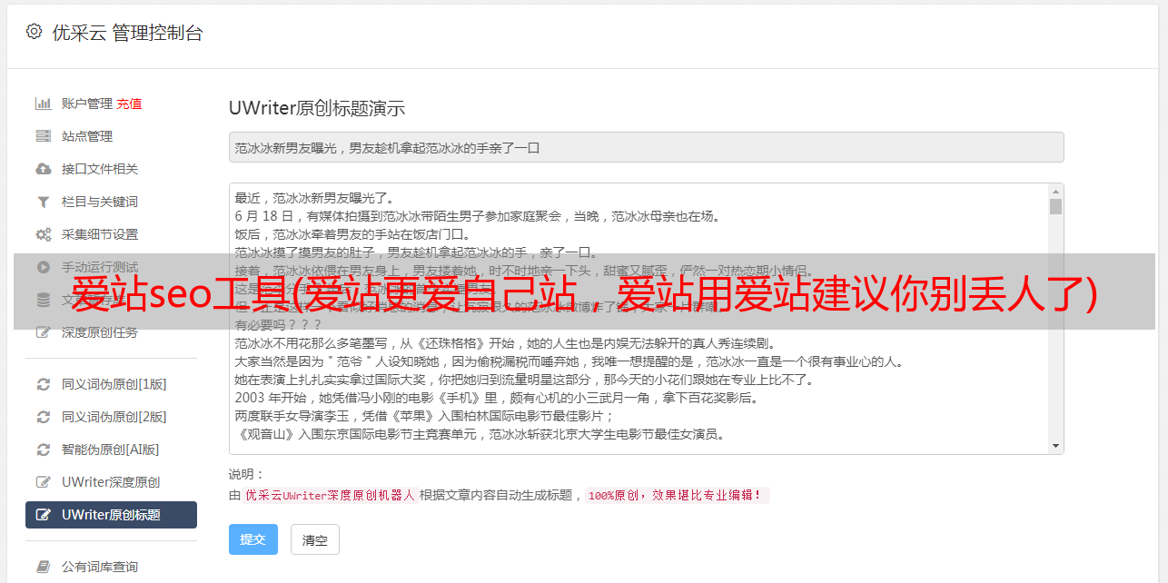优采云 发布时间: 2022-01-06 18:07爱站seo工具(爱站更爱自己站,爱站用爱站建议你别丢人了)