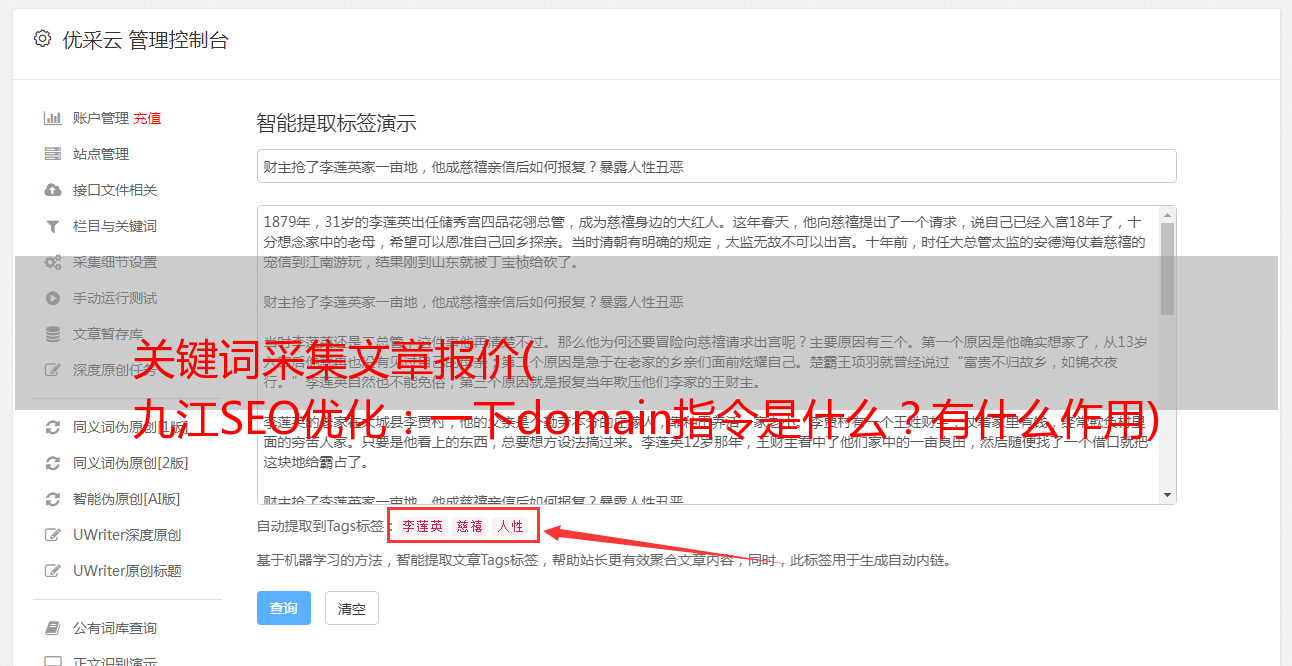 关键词采集文章报价( 九江SEO优化:一下domain指令是什么?有什么作用)