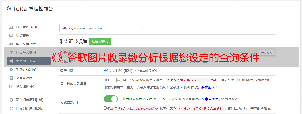 优采云 发布时间: 2021-04-23 19:26《》谷歌图片收录数分析根据您设定的查询条件
