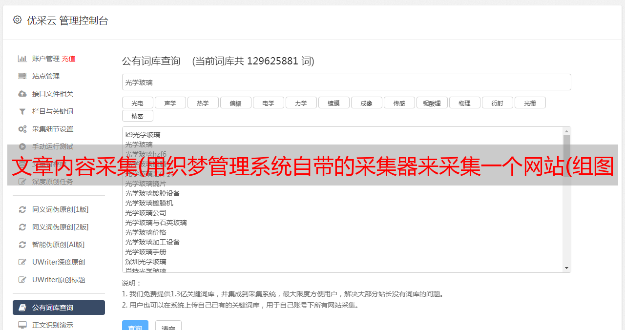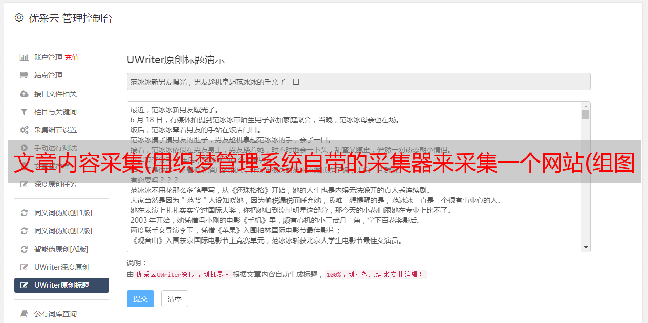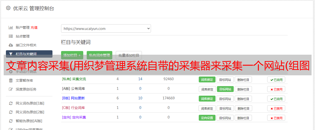 优采云 发布时间: 2022-01-07 00:04文章内容采集(用织梦管理系统自带的采集器来采集一个网站(组图))