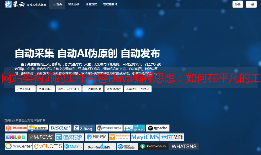 优采云 发布时间: 2022-01-07 01:18网站架构师的工作内容(Java编程思想:如何在平凡的工作中关注代码质量