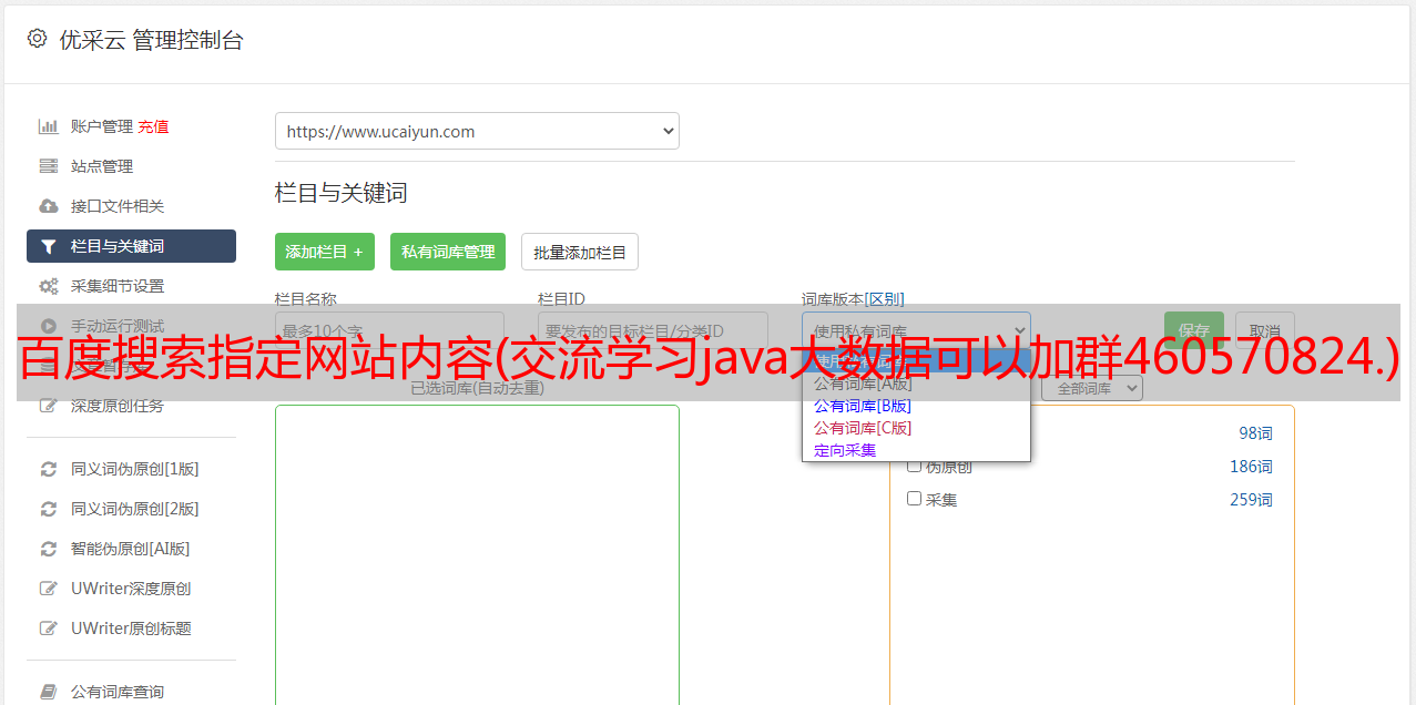 优采云 发布时间: 2022-01-07 04:14百度搜索指定网站内容(交流学习java大数据可以加群460570824.)