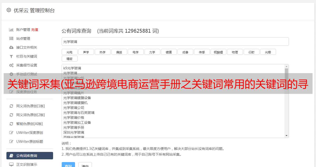 优采云 发布时间: 2022-01-07 07:17关键词采集(亚马逊跨境电商运营手册之关键词常用的关键词的寻找方式)