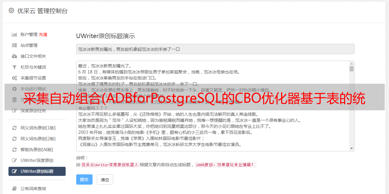 优采云 发布时间: 2022-01-07 10:00采集自动组合(ADBforPostgreSQL的CBO优化器基于表的统计信息做出合理决策)
