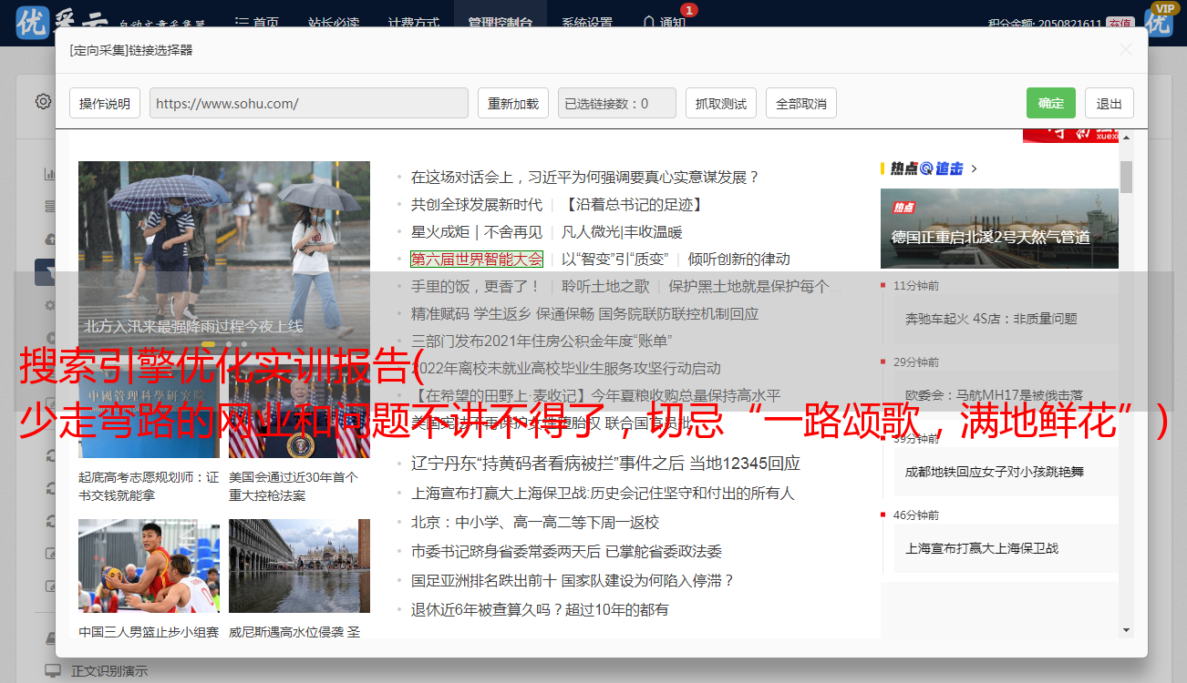 搜索引擎优化实训报告( 少走弯路的网业和问题不讲不得了,切忌“一路颂歌,满地鲜花”)