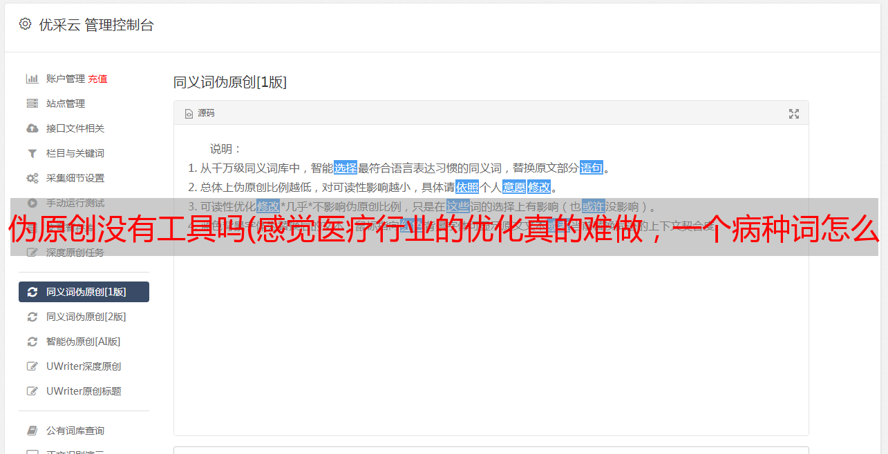 伪原创没有工具吗(感觉医疗行业的优化真的难做,一个病种词怎么写都会撞,太难了[?])