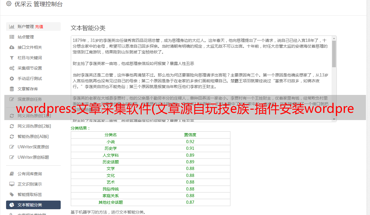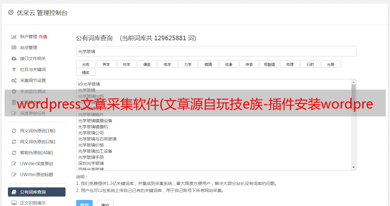 (一)插件市场安装方法使用管理员账号登录WordPress网站后台;打开左侧菜单:“插件”--“安装插件”-“输入关键词keydatas即可搜索插件,出现“优采云Data采集 and release platform”时点击“Install Now”,安装完成后点击“Enable”显示“优采云采集 Platform ”在左侧菜单(见下图)点击“优采云采集平台”,一定要修改发布密码等(见下图)。(配置发布目标时需要) )