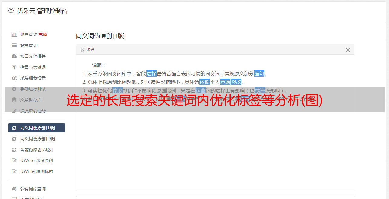 选定的长尾搜索关键词内优化标签等分析(图)