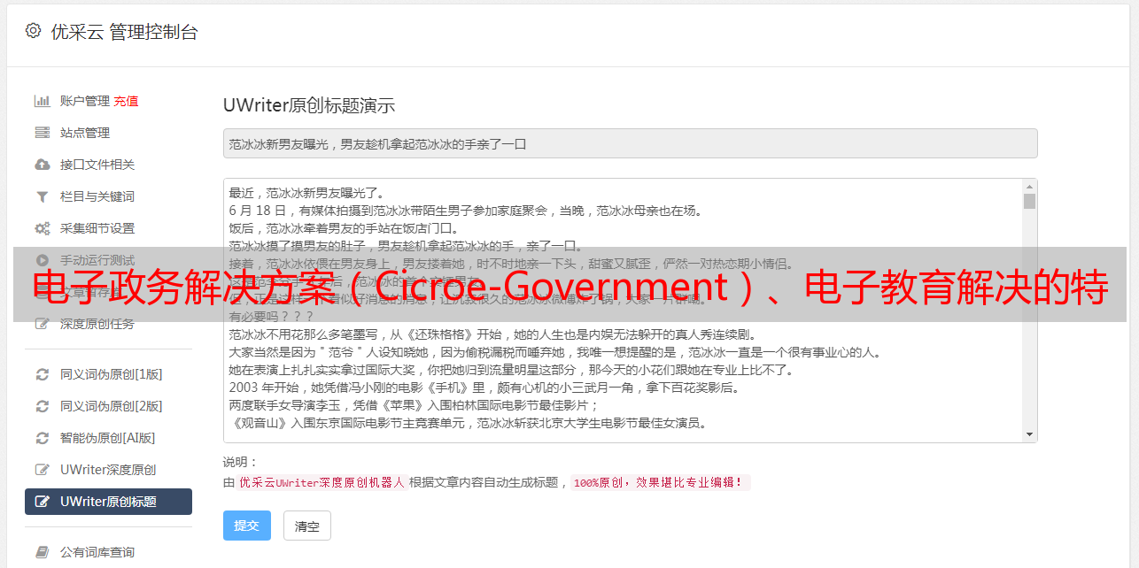 优采云 发布时间: 2021-04-23 22:35电子政务解决方案(Cicroe-Government)、电子教育解决的特色优势