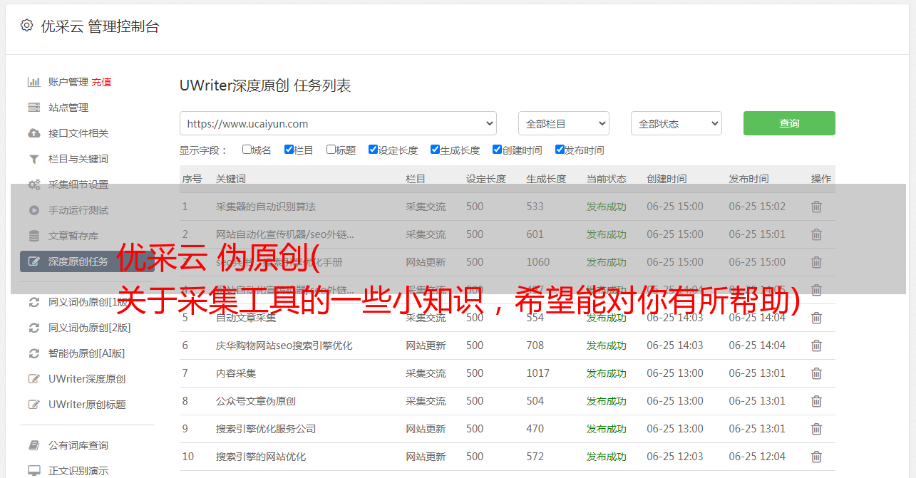 第四点,我们如何处理来自采集的内容?通过伪原创提高采集文章SEO收录率,我们肯定不会达到采集 100%原创。使用伪原创的目的是想办法绕过搜索引擎或新媒体的收录重复检查算法。让收录的内容更快,增加文章的流量。