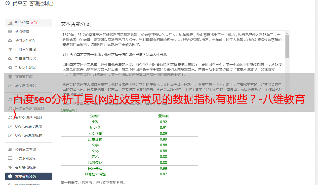 优采云 发布时间: 2022-01-08 05:07百度seo分析工具(网站效果常见的数据指标有哪些?-八维教育