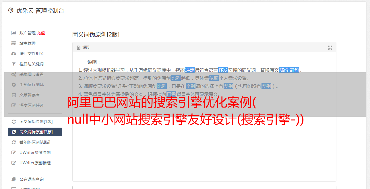 优采云 发布时间: 2022-01-08 05:08阿里巴巴网站的搜索引擎优化案例(