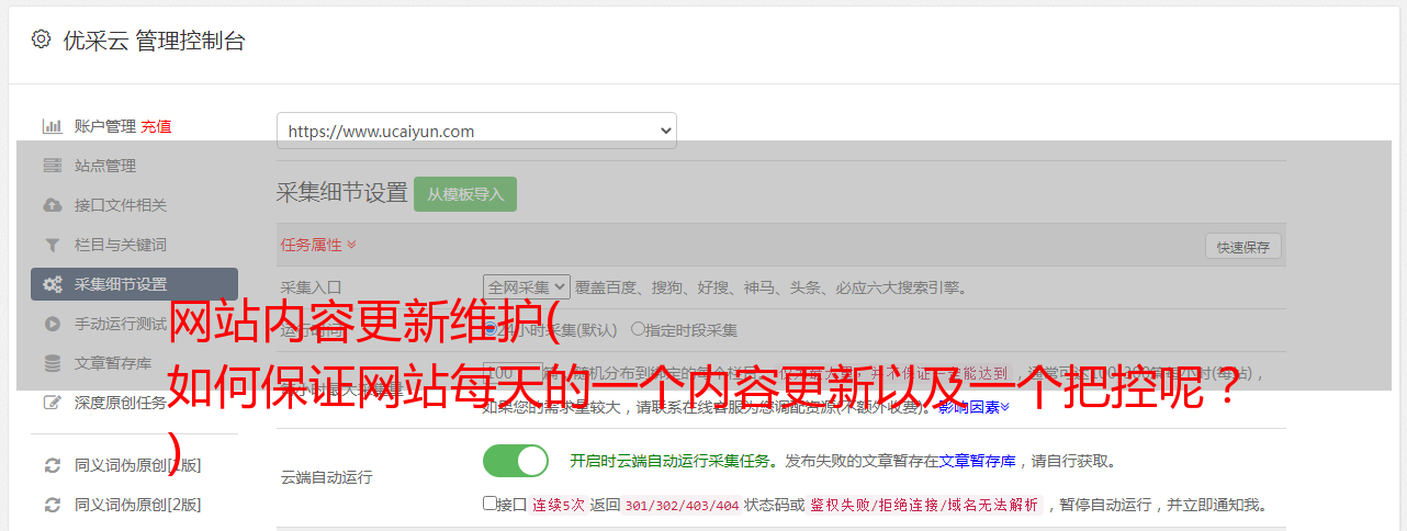 对于SEO优化排名和增加权重,搜索引擎对每天都有新信息的网站非常友好。我们可以通过采集/伪原创的文章来更新,可以有效缩短快照时间,同时通过内容标题中的长尾关键词和内容中的核心关键词,也能有效提升关键词的排名。当然,在这方面,我们的内容质量是必须要保证的。如何保证网站每天有内容更新和内容质量控制?答案是用采集内容丰富我们的网站内容,但采集也有技巧!首先要明确自己的网站关键词和业务方向,SEO站长一定要跟着行业关键词去< @采集,切记不要随意采集张冠李戴,那样会被搜索引擎命中。采集伪原创中的内容要在伪原创之后处理后再发布,这样你的网站内容原创质量比较高,对搜索引擎也比较友好。发布内容需要有规律,定期发布,保持正常频率。当您的收录 排名上升时,您可以定期酌情增加发表文章的数量。干货在这里,采集需要使用工具来完成,使用免费的采集工具来完成网站的每日更新内容,是SEO站长的好帮手采集。因为操作很简单,只需要导入关键词即可完成全网采集,无需编写采集规则,特别适合不懂技术代码的SEO站长。采集完成后,可以直接在伪原创之后发布,不管是什么cms都可以无缝对接,这三点可以帮助SEO站长节省大量时间,提高效率,丰富网站