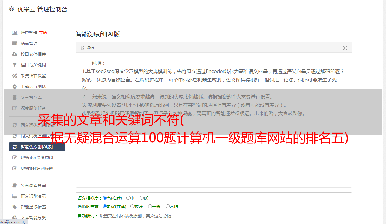 采集的文章和关键词不符( 一据无疑混合运算100题计算机一级题库网站的排名五)