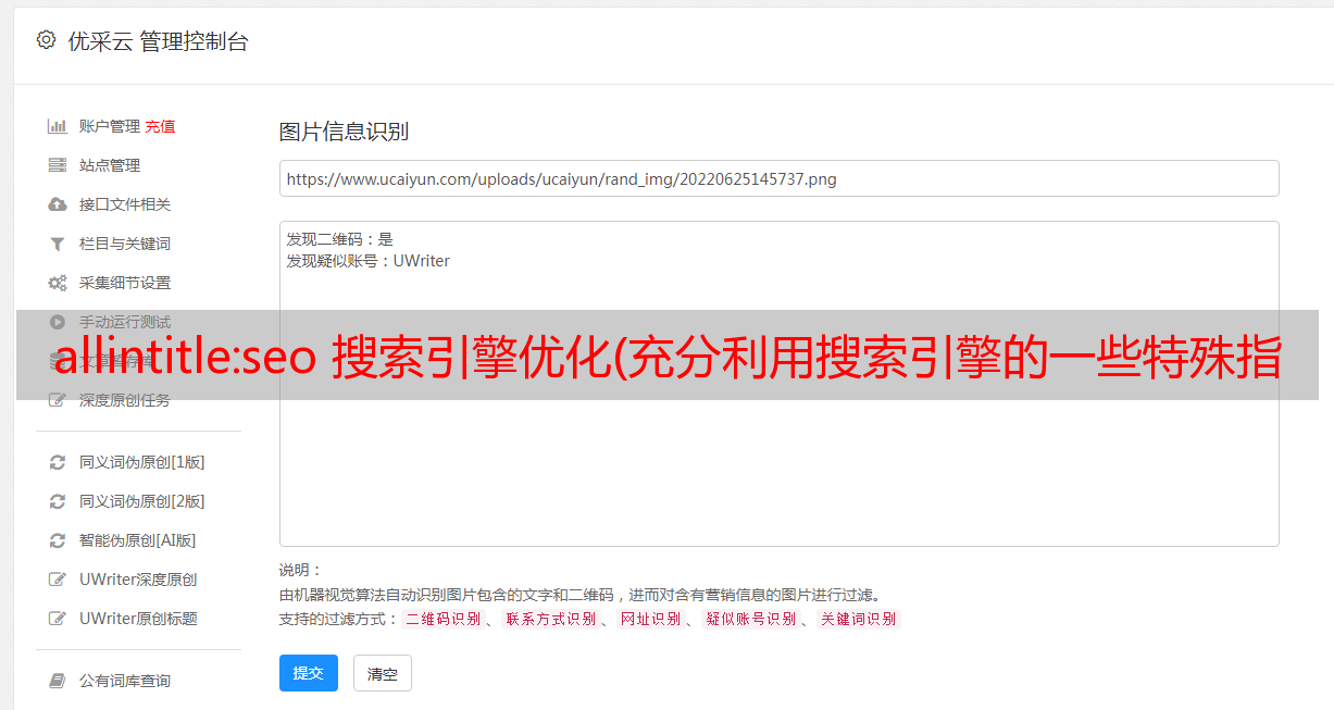 优采云 发布时间: 2022-01-08 14:00allintitle:seo 搜索引擎优化(充分利用搜索引擎的一些特殊指令是SEO行业的一项基本技能。